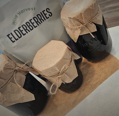 This product contains Ultra filtered water, wild harvest elderberries, cloves, cinnamon, ginger, raw honey, lemon, marshmallow root, echinacea. (8oz)